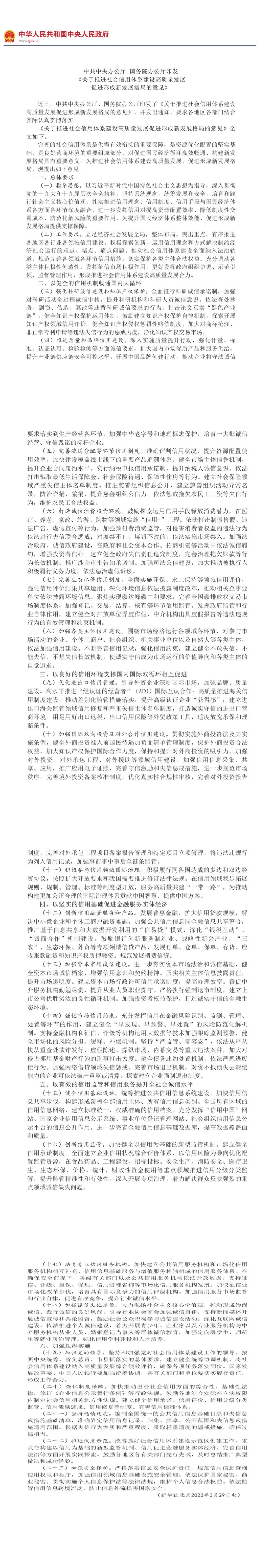 《關(guān)于推進(jìn)社會(huì)信用體系建設(shè)高質(zhì)量發(fā)展 《關(guān)于推進(jìn)社會(huì)信用體系建設(shè)高質(zhì)量發(fā)展促進(jìn)形成新發(fā)展格局的意見